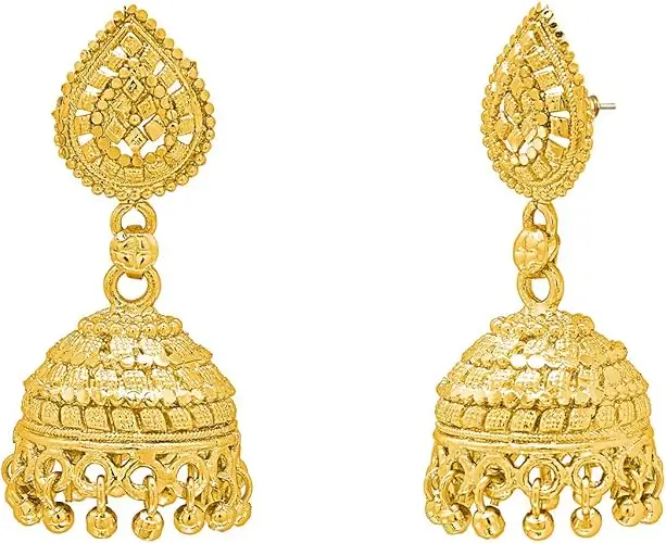 Add a touch of traditional beauty to your jewelry collection with the Bodha Bollywood Small Size Gold-Plated Jhumka Earrings (SJ_746). These delicate earrings are inspired by classic Indian temple designs, giving you the perfect blend of heritage and elegance.